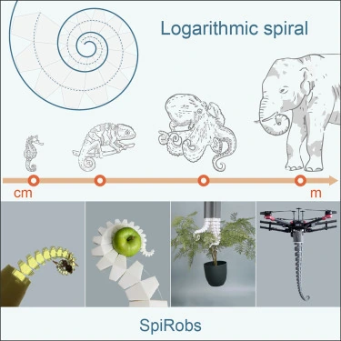 该团队基于对自然界中多种生物柔性肢体(如象鼻、章鱼触手、海马和变色龙尾巴)形态和运动的系统观察和数学模型抽象,首次提出基于对数螺旋线结构的新型螺旋软体机器人,并系统研究了其设计理论、制备方法和操作策略,在多尺度、多材质、多维度和协作交互等拓展应用场景中展示了该类机器人在动作灵巧度、精细度及速度等方面可比拟生物体的优越性能。